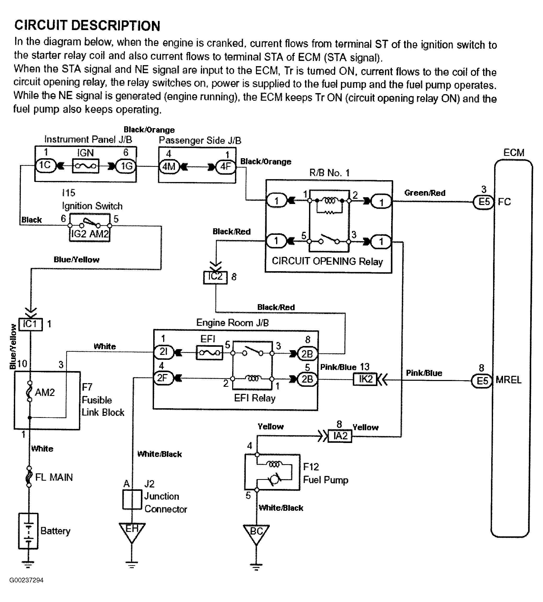 Fig 1: Fuel Pump Control Circuit Description & Diagram (Highlander)