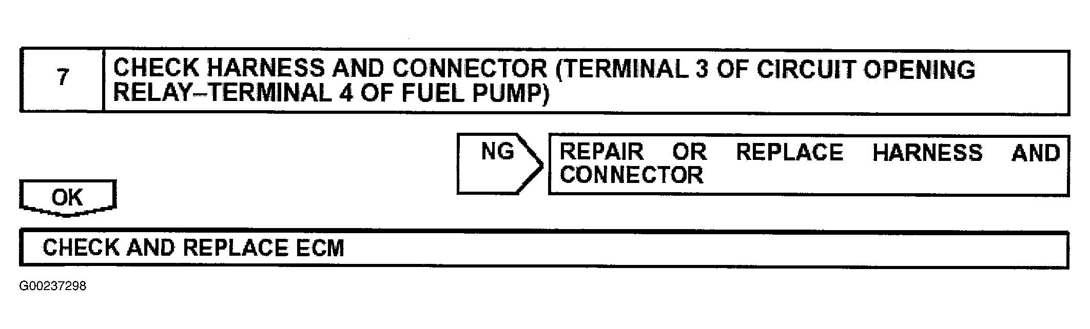 For fuel pump control circuit inspection and wiring diagram, see Fig 1-Fig 5 . Before replacing ECM, check ECM connectors and ground circuits. See ENGINE CONTROL MODULE POWER & GROUND CIRCUITS .
