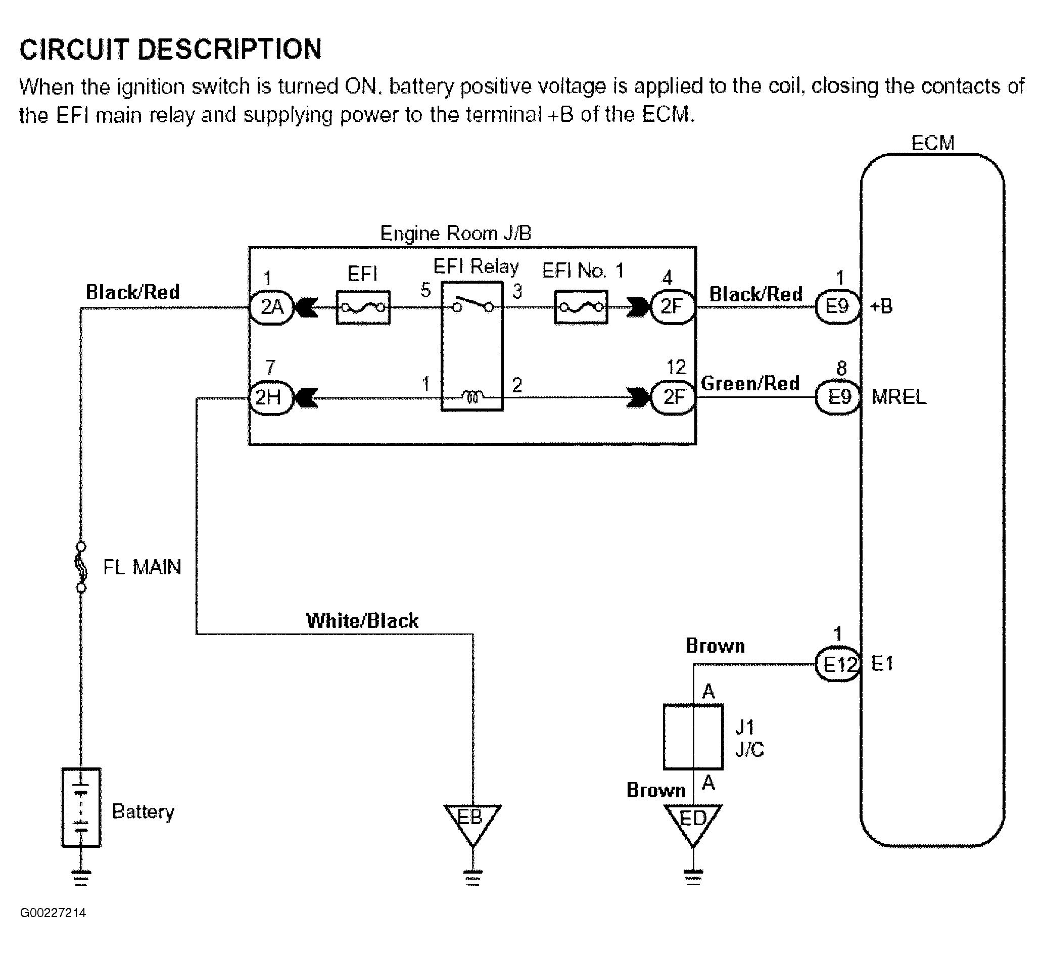 Fig 1: Engine Control Module Power Source Circuit Description & Diagram (Celica)