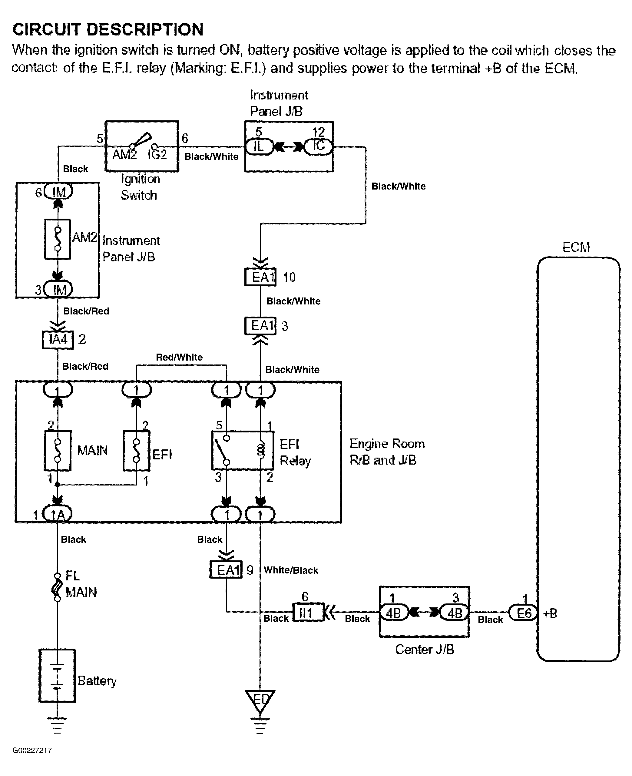 Fig 1: Engine Control Module Power Source Circuit Description & Diagram (Corolla)