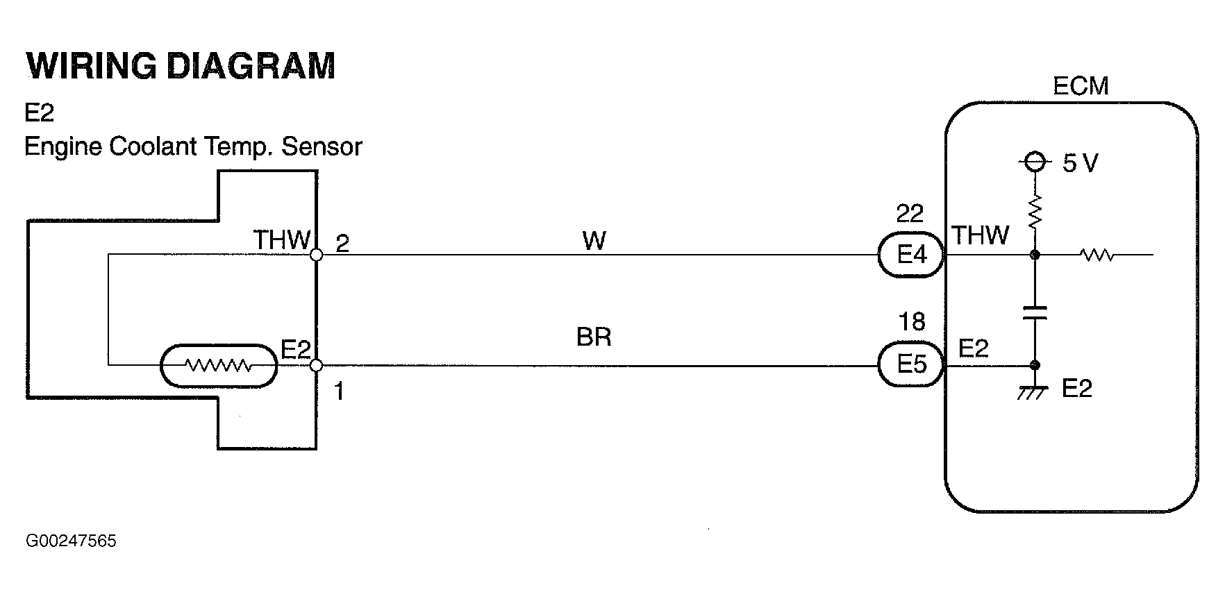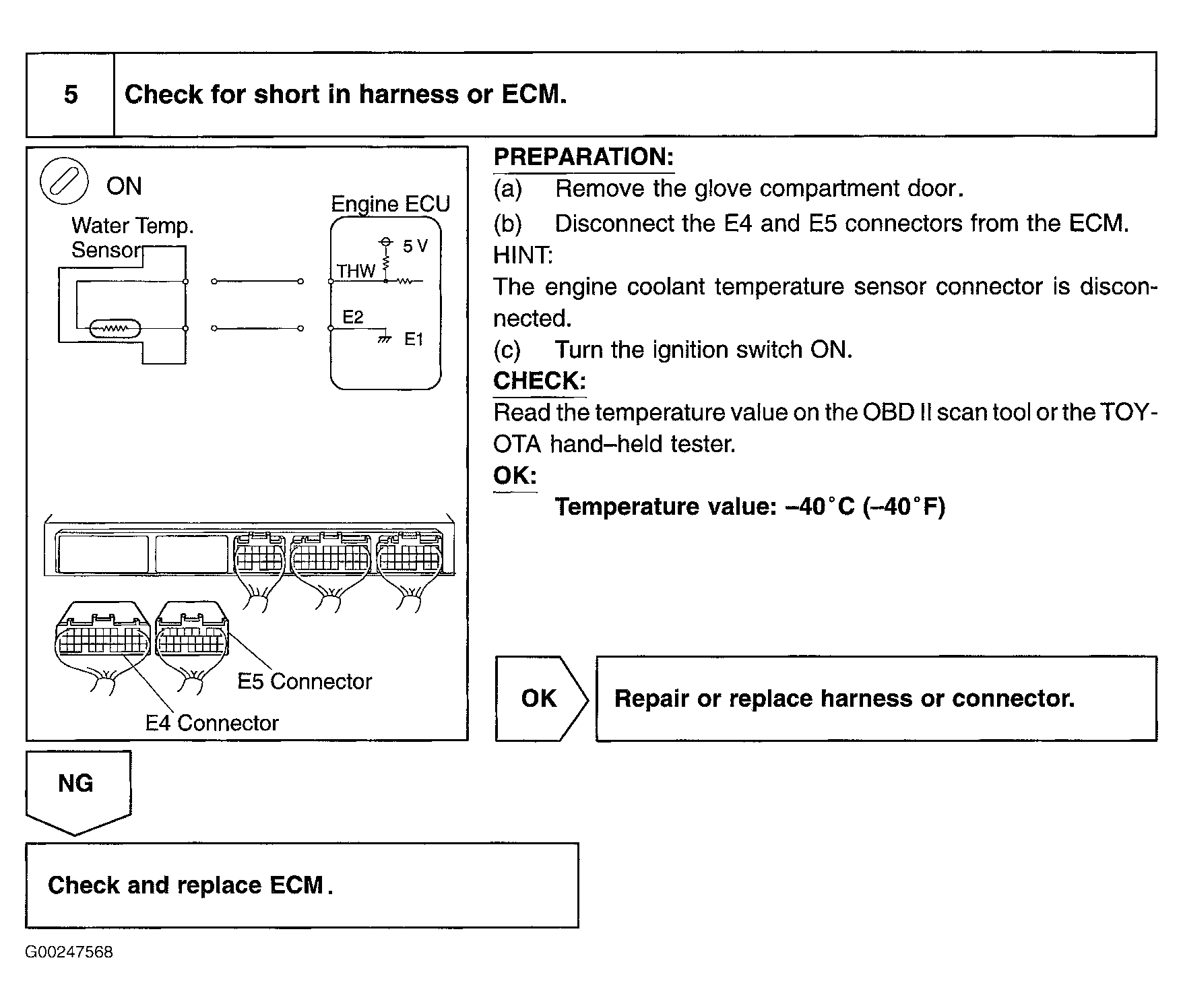 When access to, or replacement of ECM is necessary, Engine Control Module (ECM) is located behind glove box. See Figure. For ECM connector terminal view, see Figure. For ECT sensor circuit wiring diagram, see Fig 4.