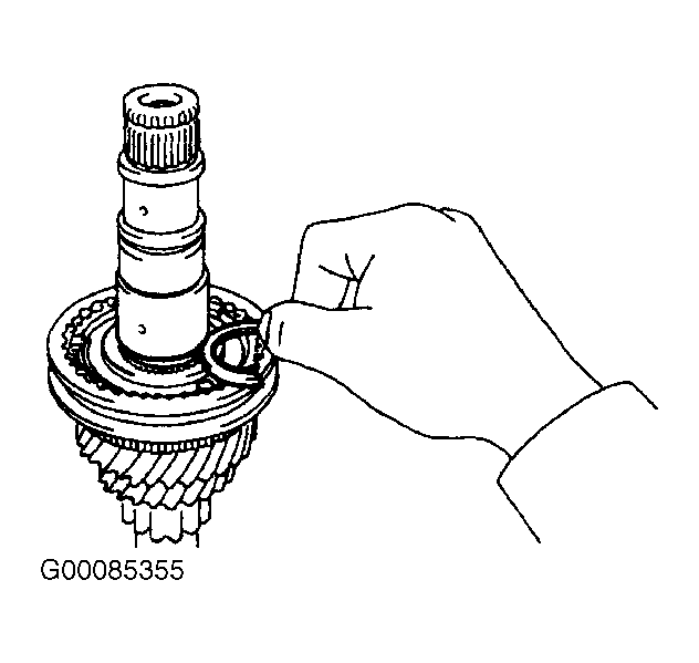 - Check 3rd gear thrust clearance. Standard clearance is .004-.014" (.10-.35 mm). Install spacer. Place synchronizer ring on 4th gear and align ring slots with shifting keys. Install 4th gear. Using a press, install on ball bearing. See Fig 3.