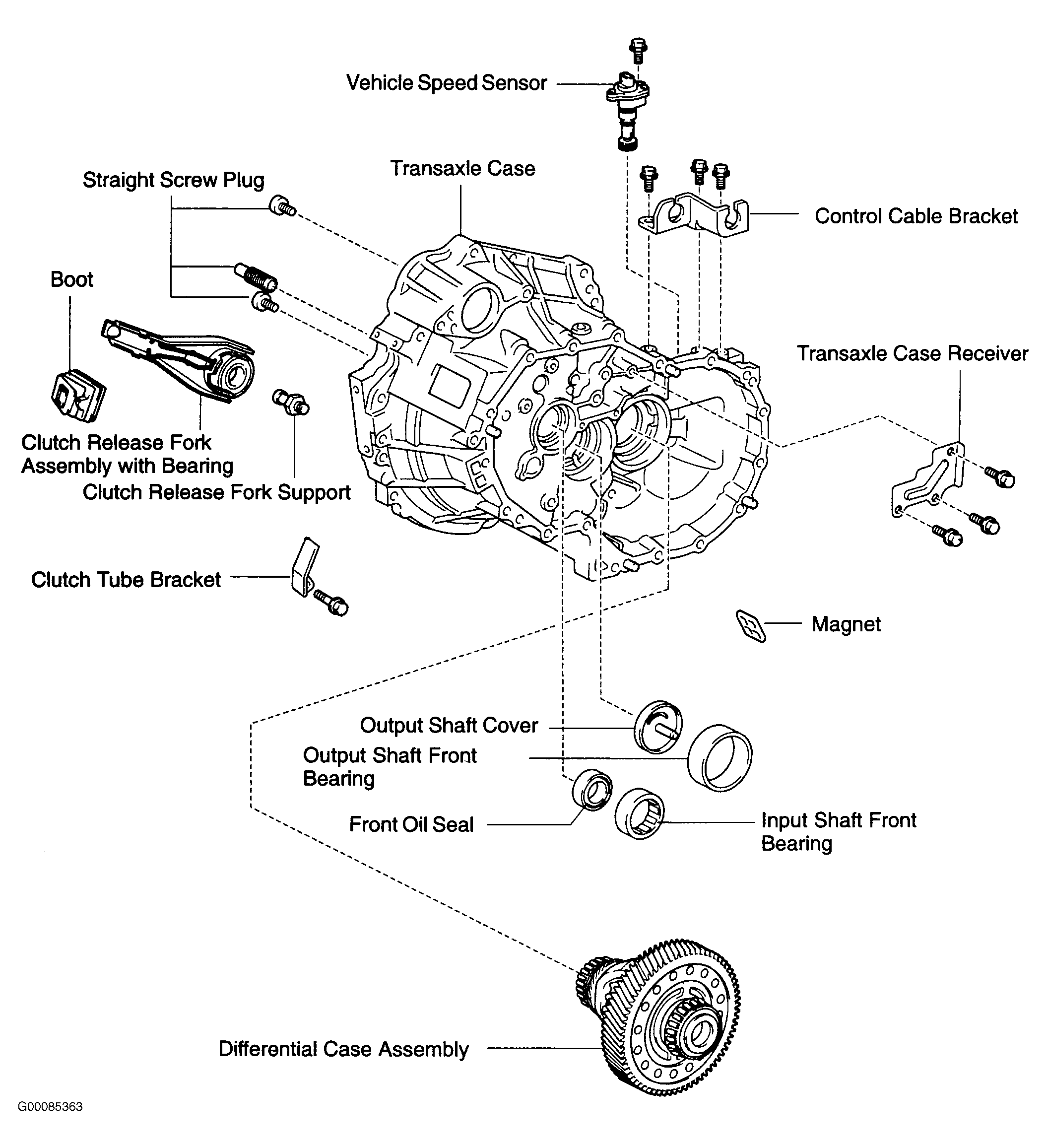 - Install back-up light switch, breather plug, lock ball assembly and vehicle speed sensor. See Figure. See TORQUE SPECIFICATIONS . Remove clutch release fork assembly with bearing. See Figure and Figure .