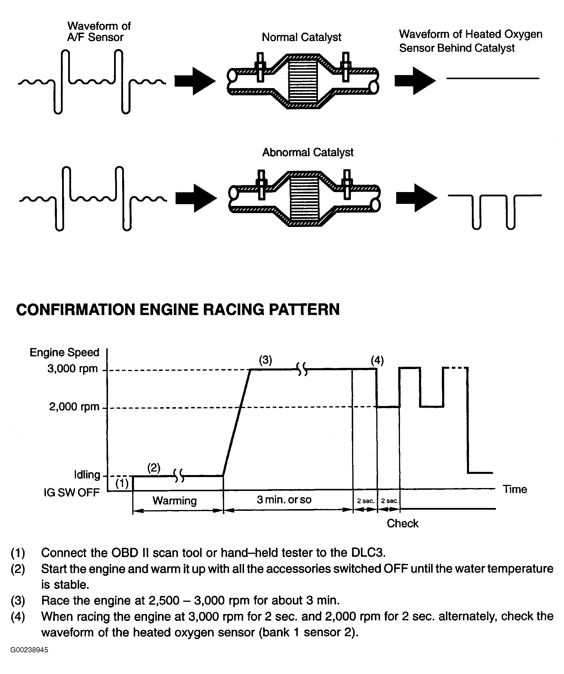 Fig 1: DTC P0420 Waveform Patterns & Confirmation Engine Racing Pattern