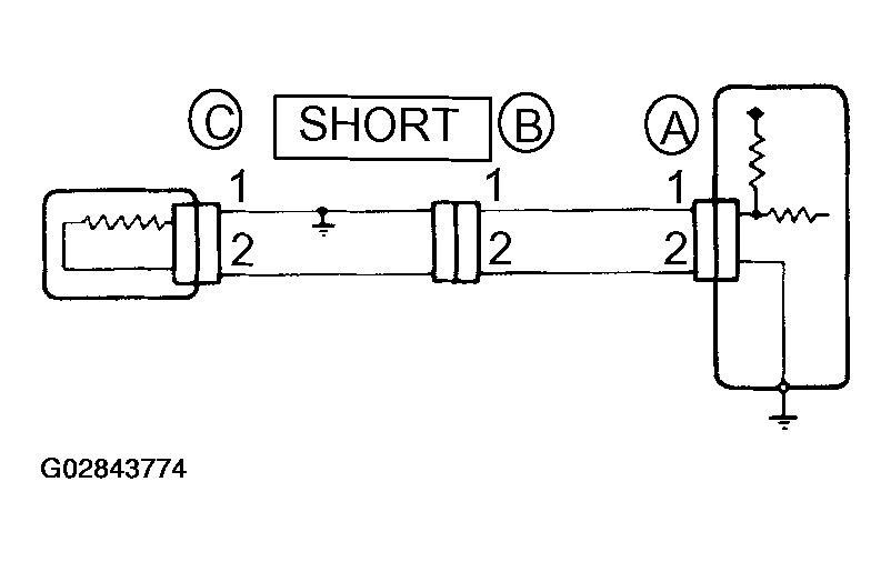 Therefore, it is found out that there is a short circuit between terminal 1 of connector "A" and terminal 1 of connector "C".