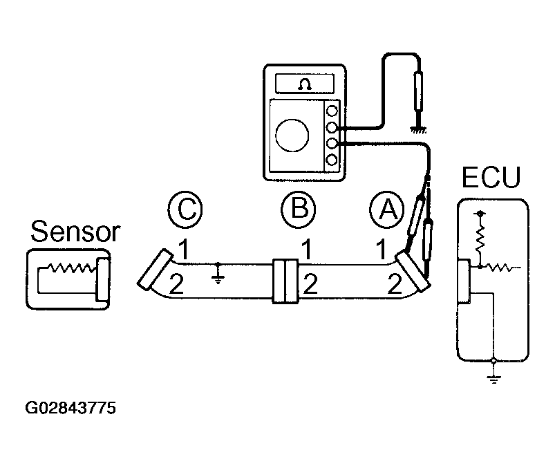 - Disconnect connectors "A" and "C" and measure the resistance between them.