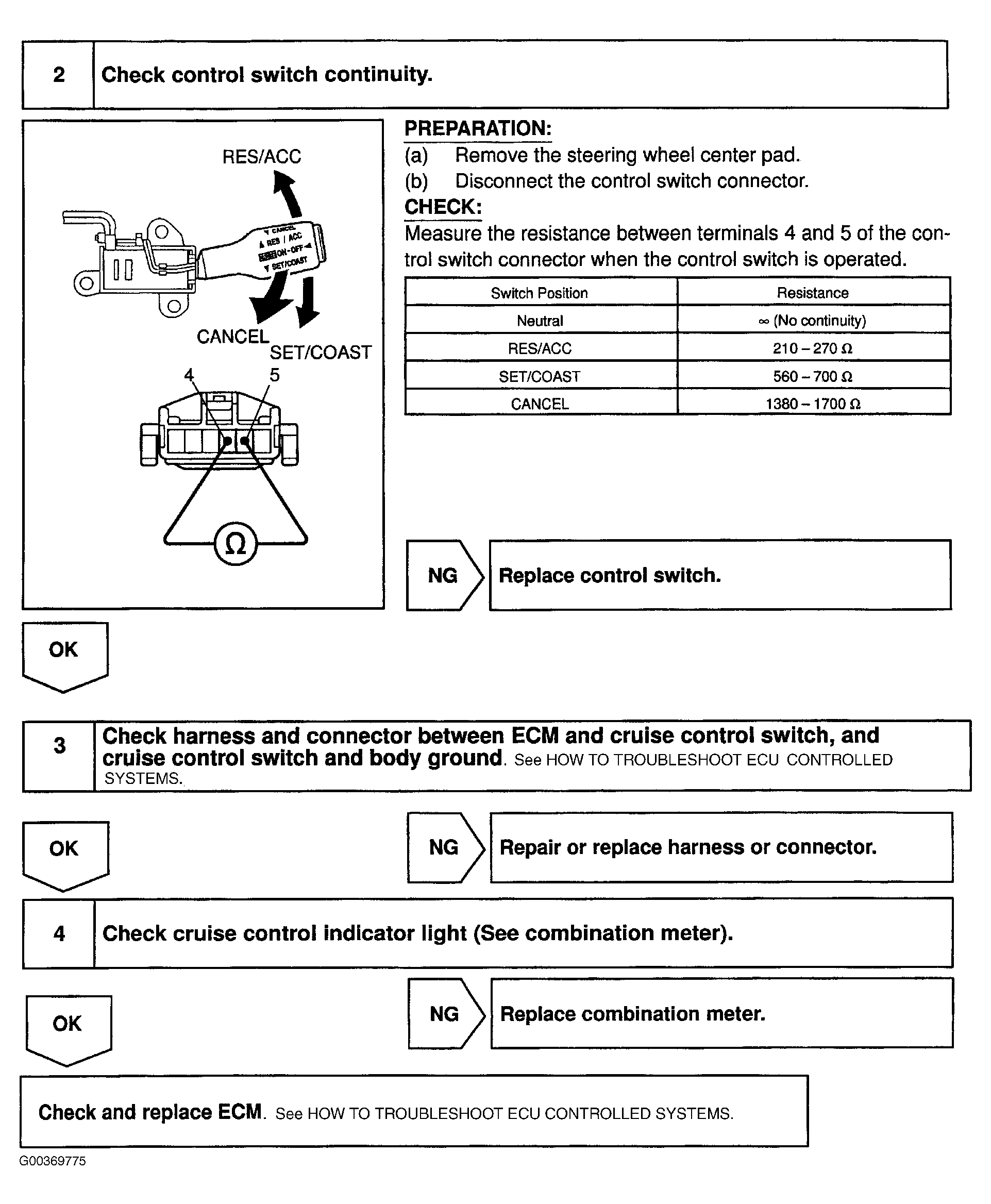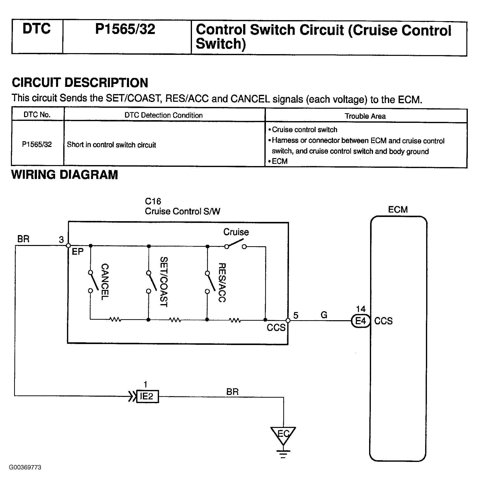 DTC P1565/32: Control Switch Circuit (Cruise Control Switch)