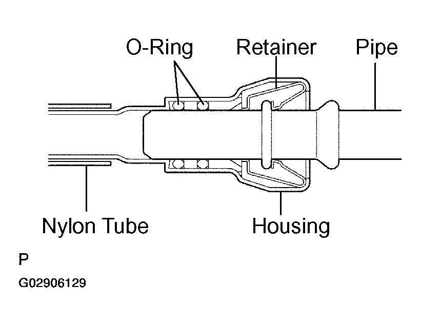 4. Align the connector axis with the pipe axis, and push in the connector until the retainer makes a "click" sound. If the connection is tight, apply a small amount of new engine oil on the tip of the pipe.
