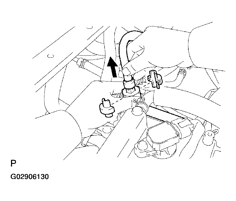 2. Grasp the metallic connector of the fuel tube assembly, pull it rearwards and hold in place.