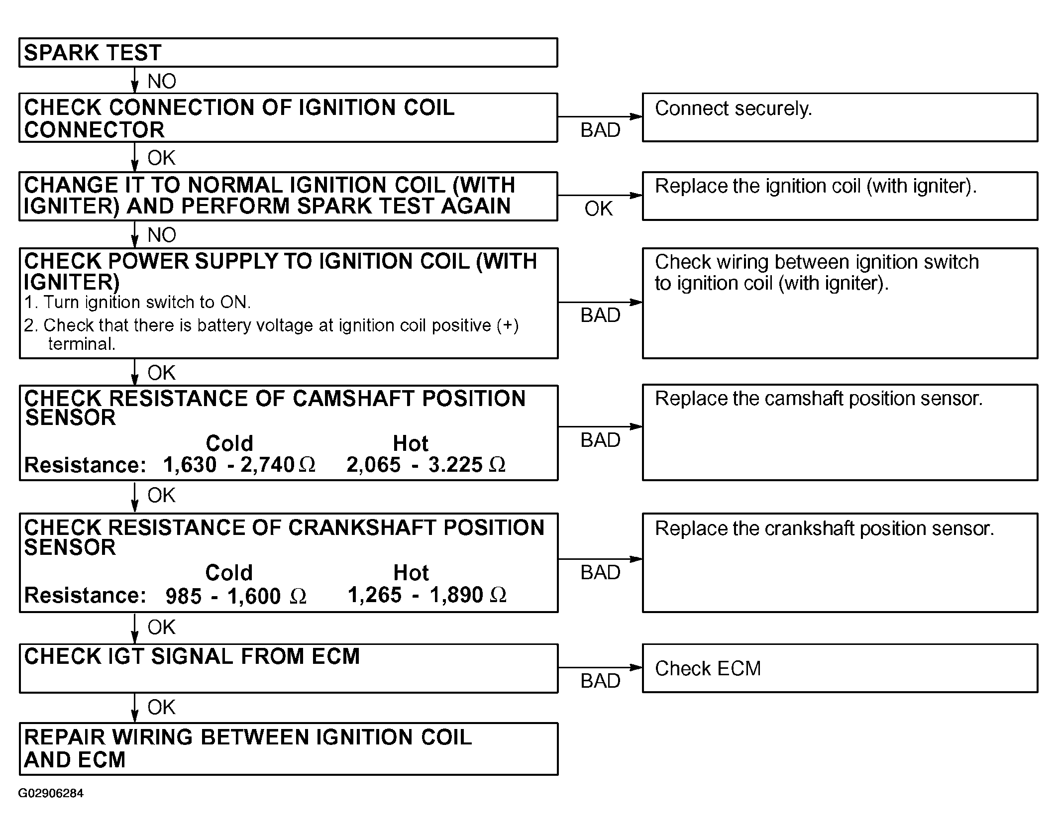 If the spark does not occur, do the test as follows in Fig 1:
