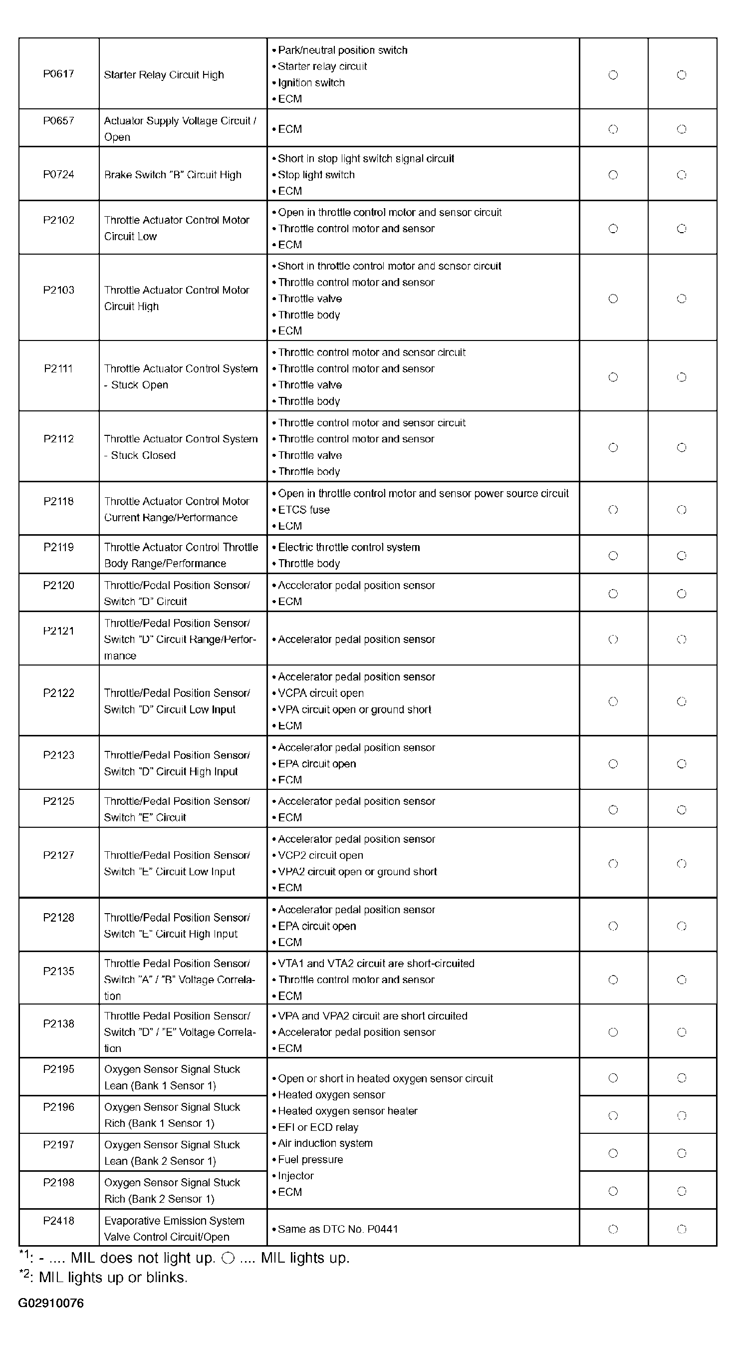 | DTC P0130 | OXYGEN SENSOR CIRCUIT (BANK 1 SENSOR 1) |