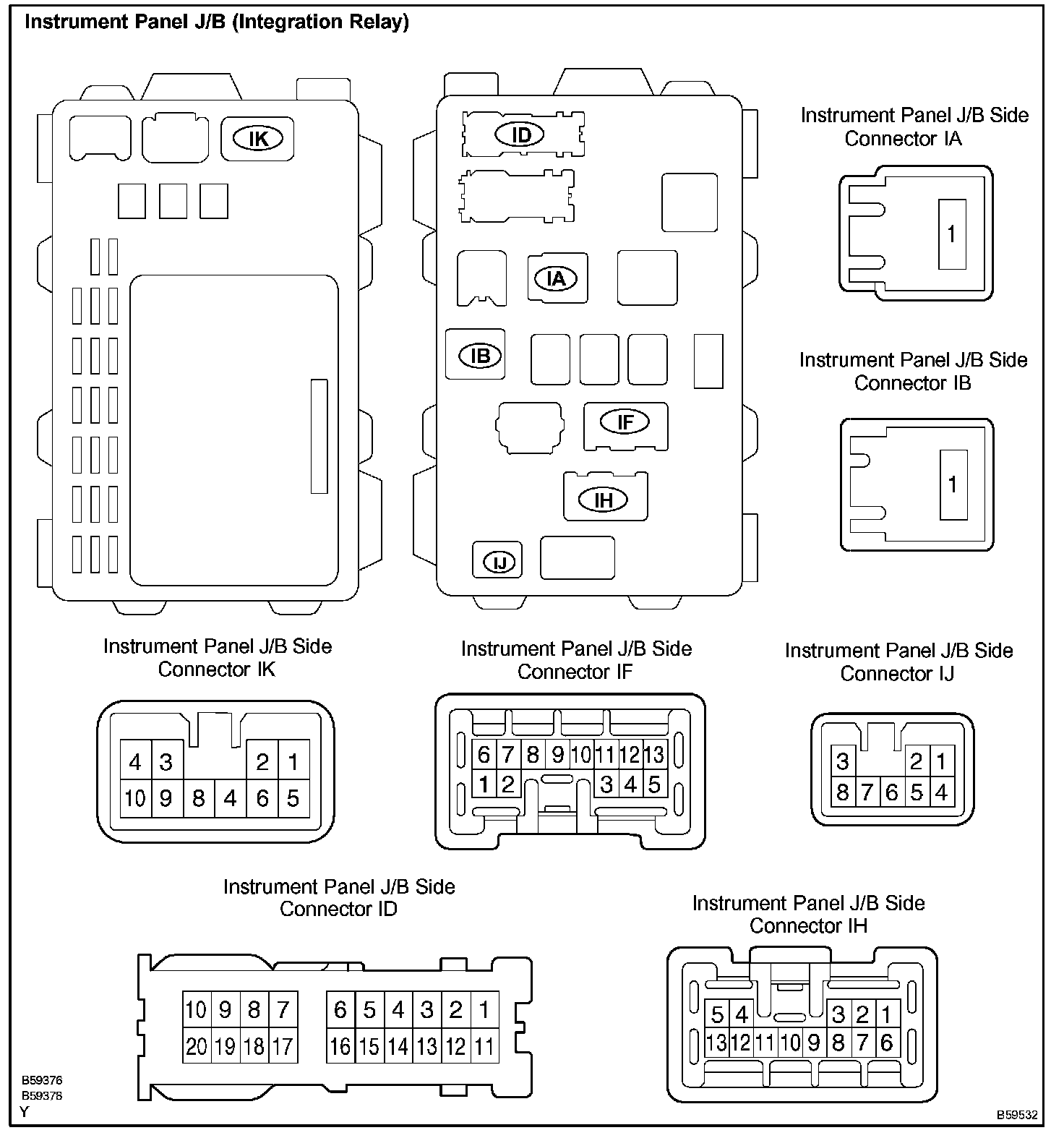 a. Disconnect the connectors IA, IB, ID, IF, IH and IJ of the instrument panel J/B.