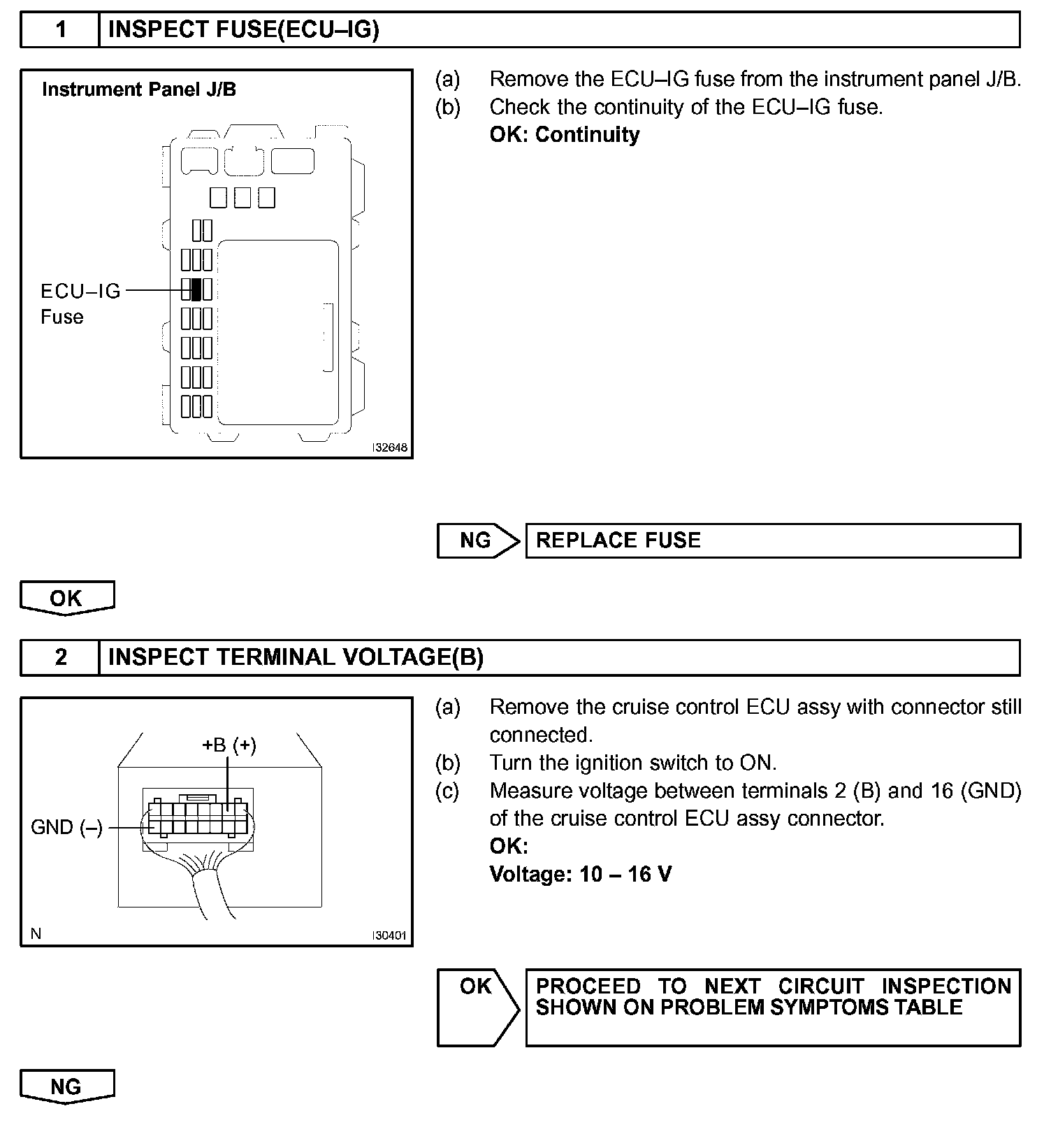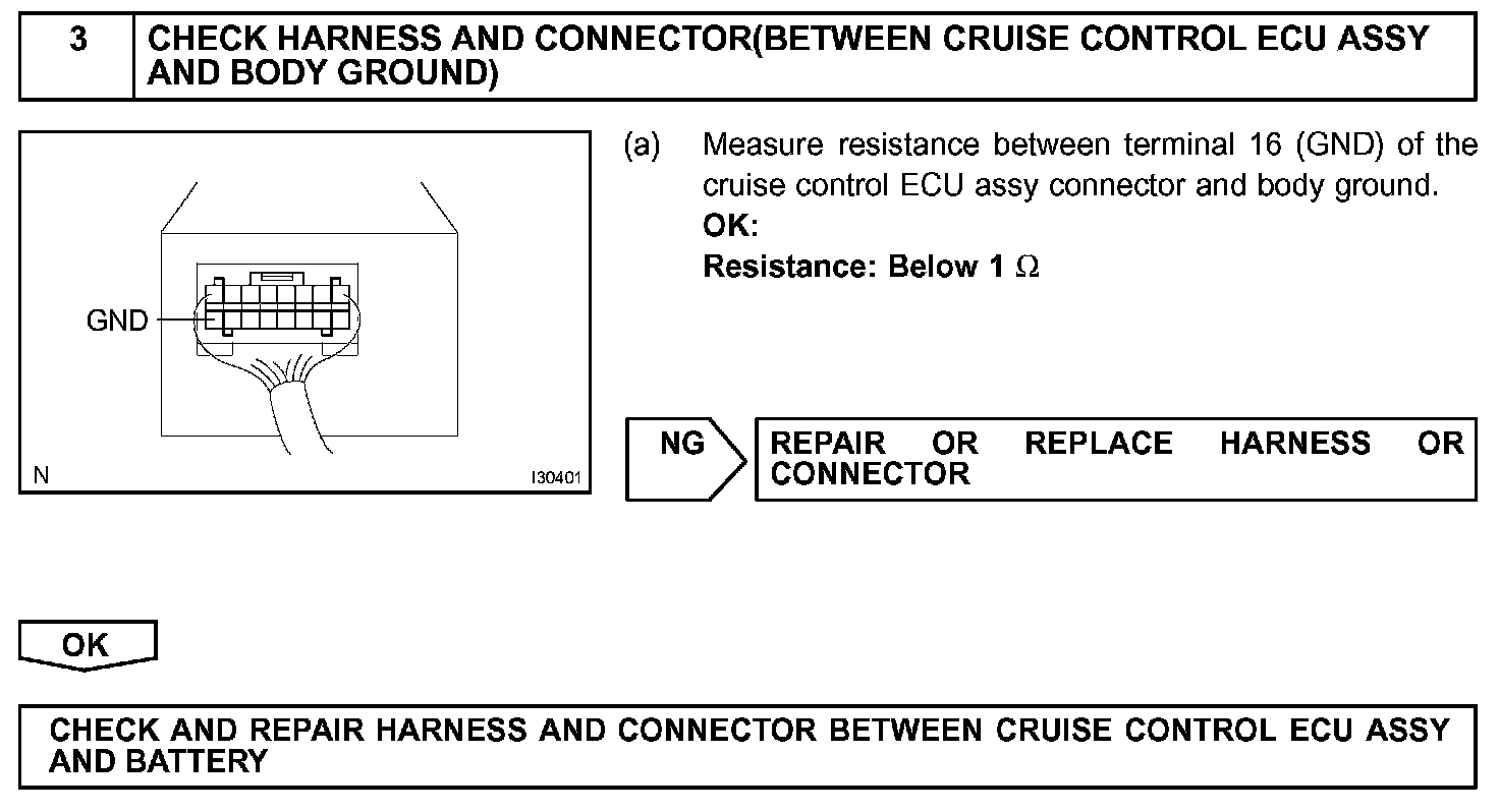 Home >> Toyota >> 2004 >> Matrix 2WD L4-1.8L (1ZZ-FE) >> Repair and Diagnosis >> Cruise Control >> Cruise Control Module >> Testing and Inspection >> Component Tests and General Diagnostics
