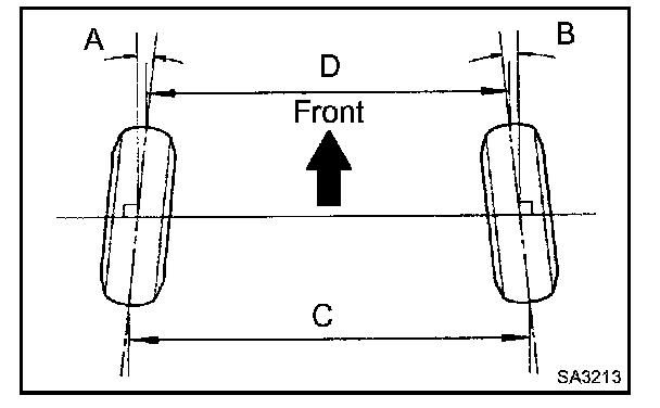 It the toe-in is not within the specified value, inspect and replace the suspension parts as necessary.