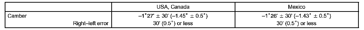 It the measured value is not within the specified value, inspect the suspension parts for damage and/or wear and replace them if necessary become camber is not adjustable.