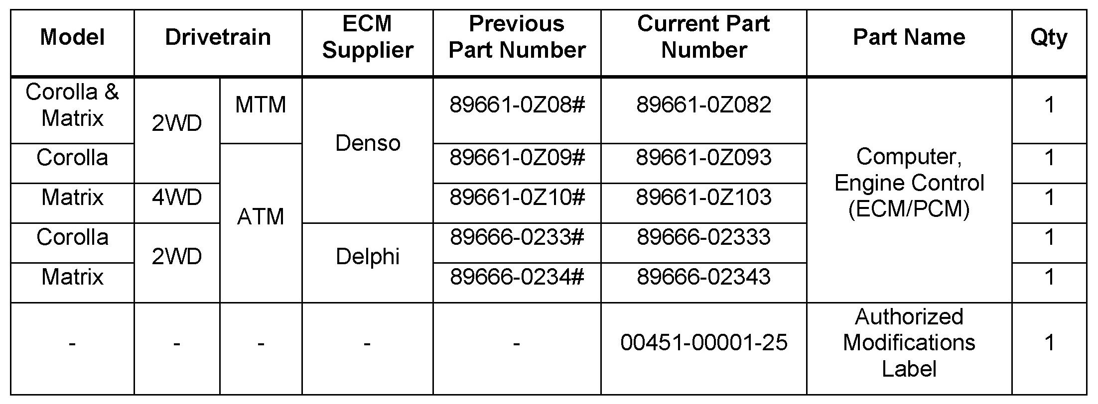 - ECM (PCM) part number: [Refer to the Parts Information section for the CURRENT PART NUMBER]