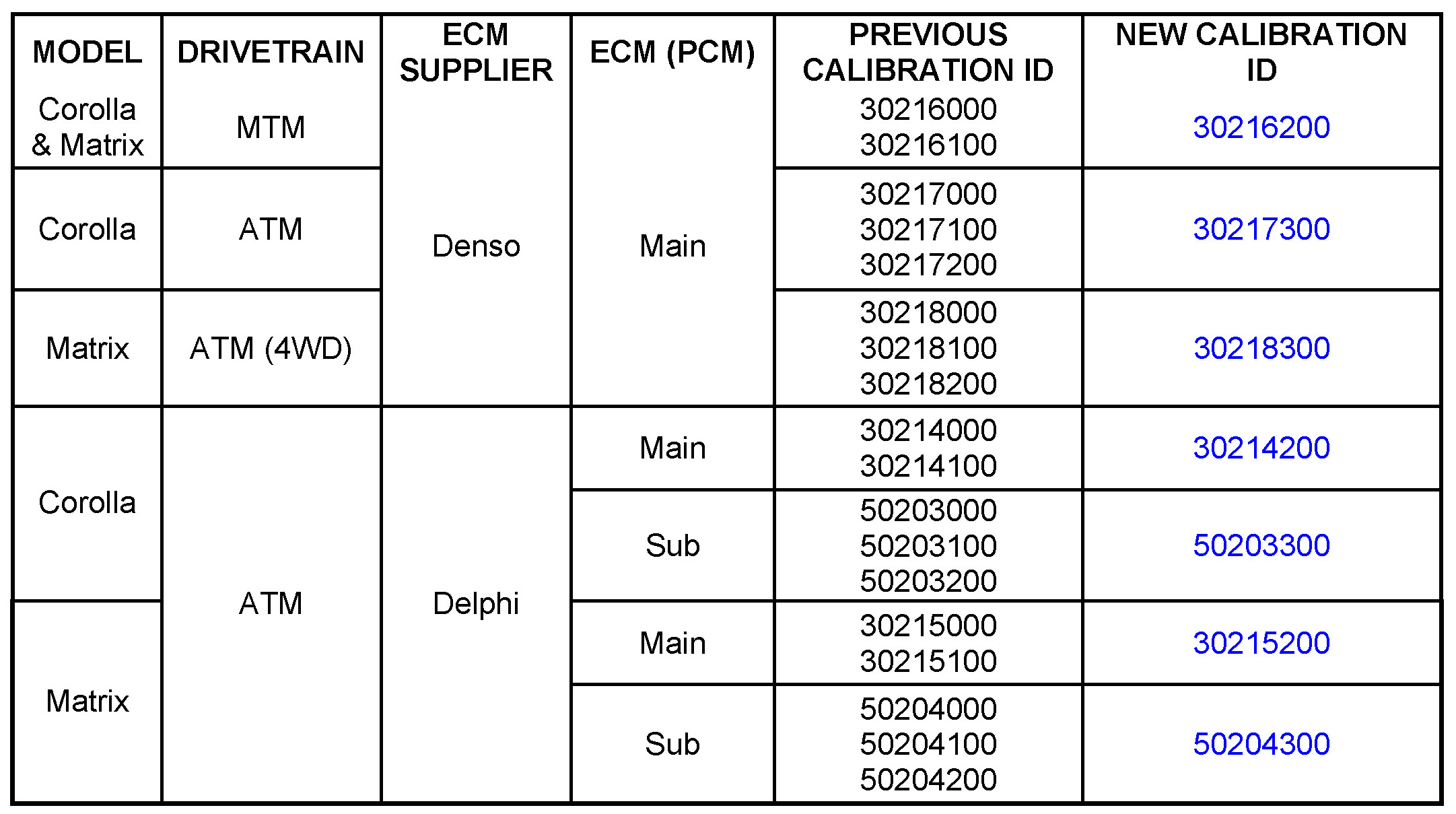 - Calibration ID(s): [Refer to the Calibration Identification Chart for the NEW CALIBRATION ID]