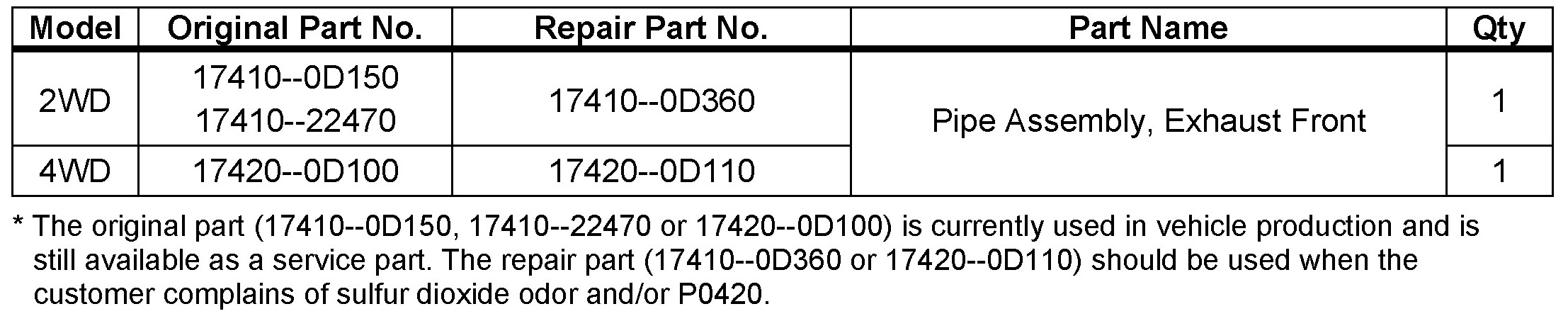 The repair procedure in this TSB is the same as TSB No. 2020 "Excessive Sulfur Dioxide Odor." This repair should only be performed once.