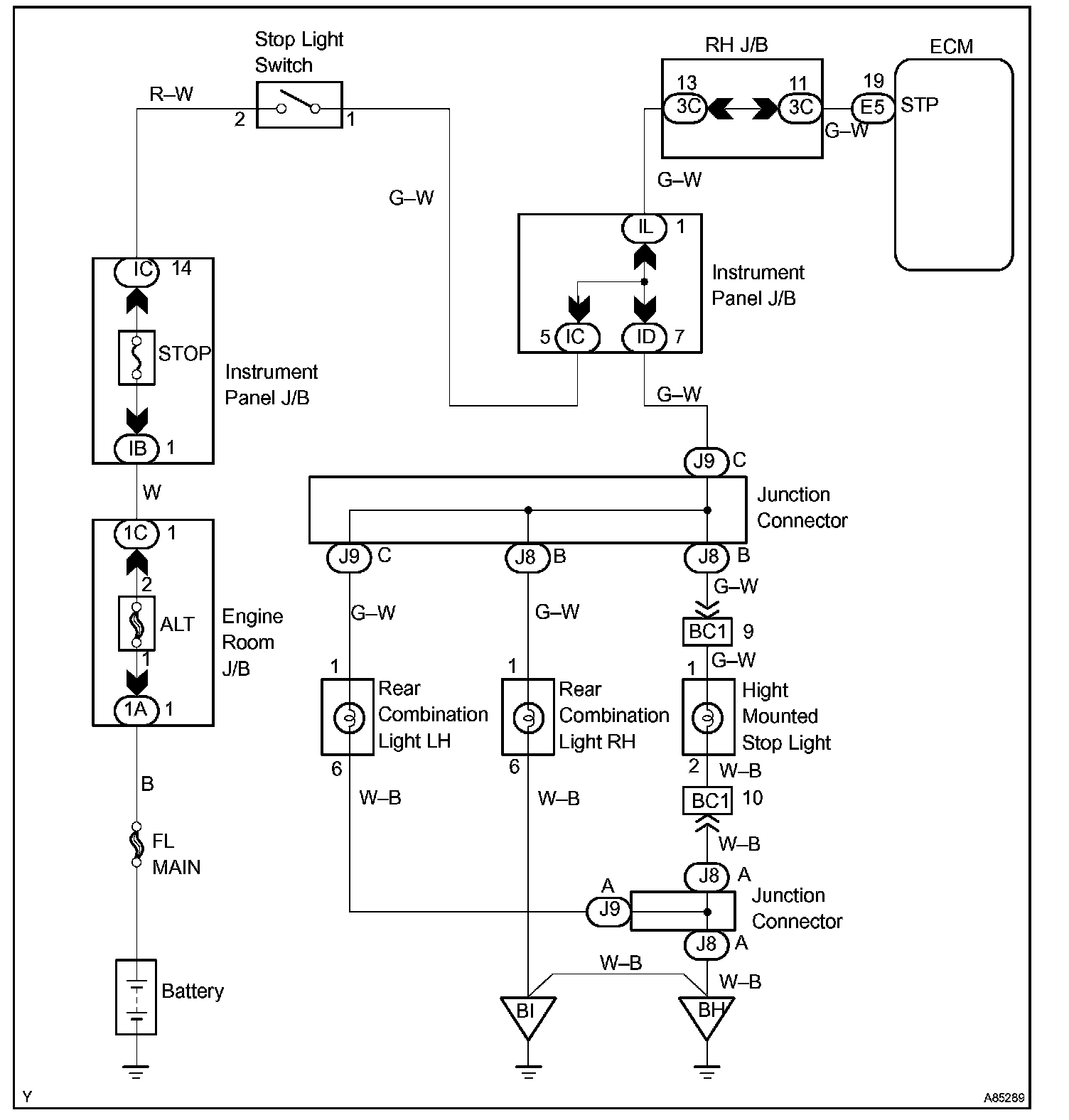 CIRCUIT DESCRIPTIONThis signal is used to detect that the brakes have been applied. The STP signal voltage is the same as the one supplied to the stop lights.