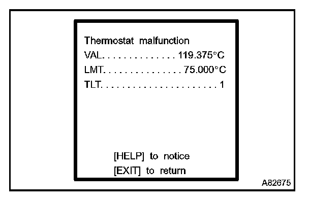 - TEST VALUE indicates the detection parameter value (Example: P0128 Thermostat Malfunction = Engine coolant temperature) at the time of malfunction (or normal) judgement is done.