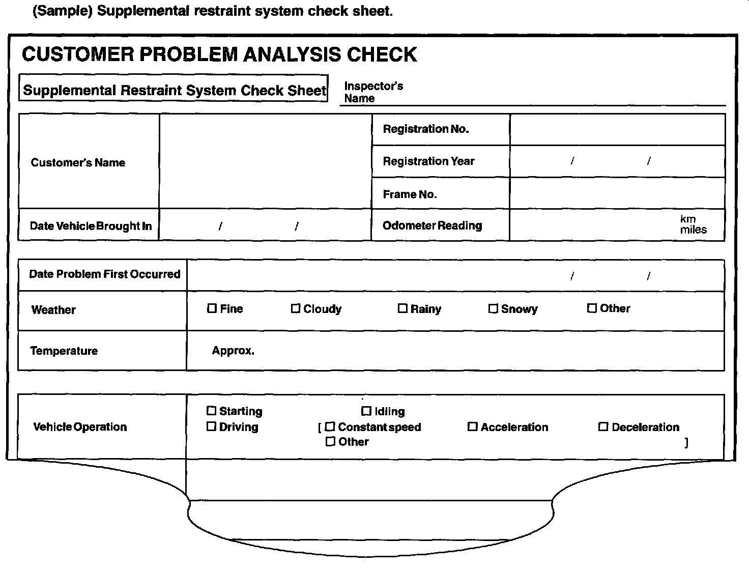 (Sample) Supplemental restraint system check sheet.