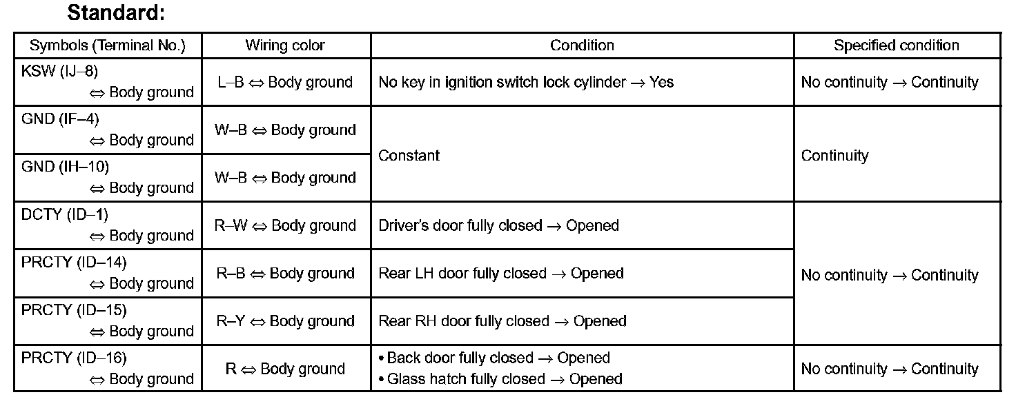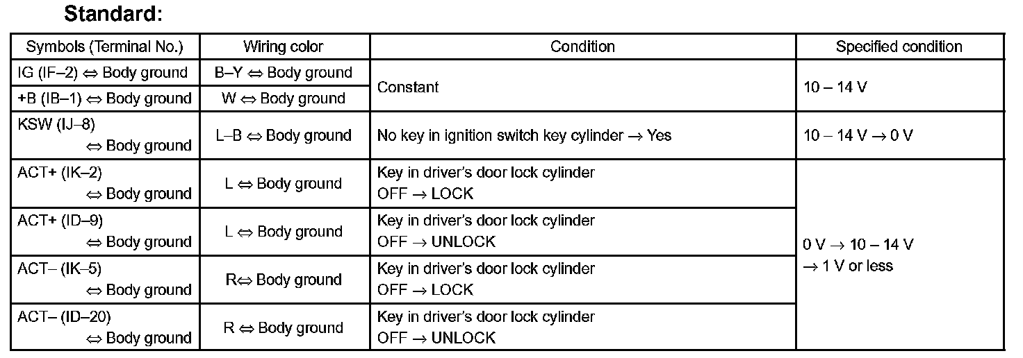 Home >> Toyota >> 2004 >> Matrix 2WD L4-1.8L (1ZZ-FE) >> Repair and Diagnosis >> Relays and Modules >> Relays and Modules - Body and Frame >> Power Door Lock Control Module >> Testing and Inspection