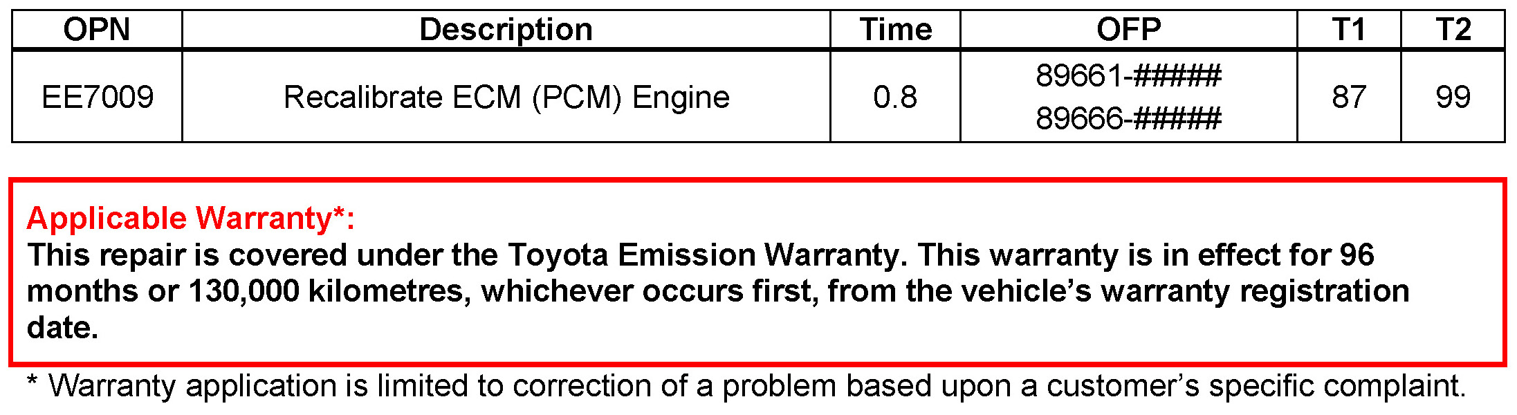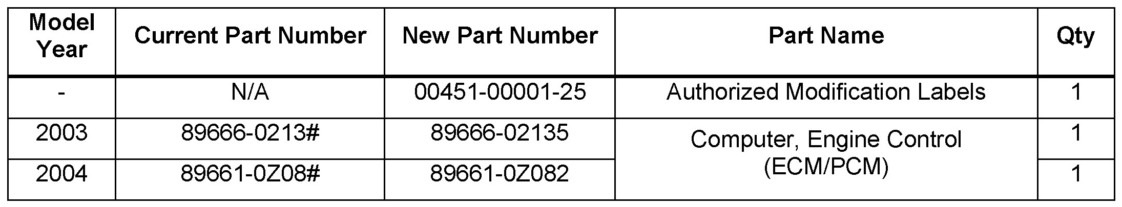 - Calibration ID(s): [Refer to the Calibration Identification Chart for the NEW CALIBRATION ID]