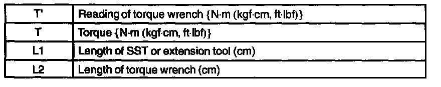 1. In case of tightening with a torque wrench which has an extended length by combining the torque wrench with SST or extension tool, if you tighten until the reading of the torque wrench reaches the specified torque value the actual torque becomes excessive.