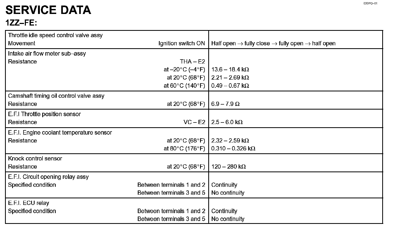 Engine Control System - Service Data: