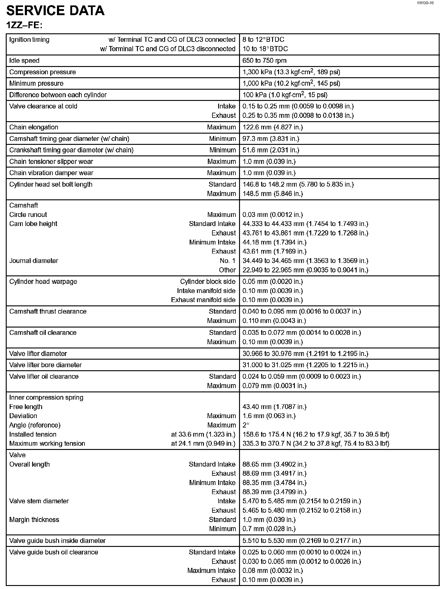 Engine Mechanical - Service Data Part 2: