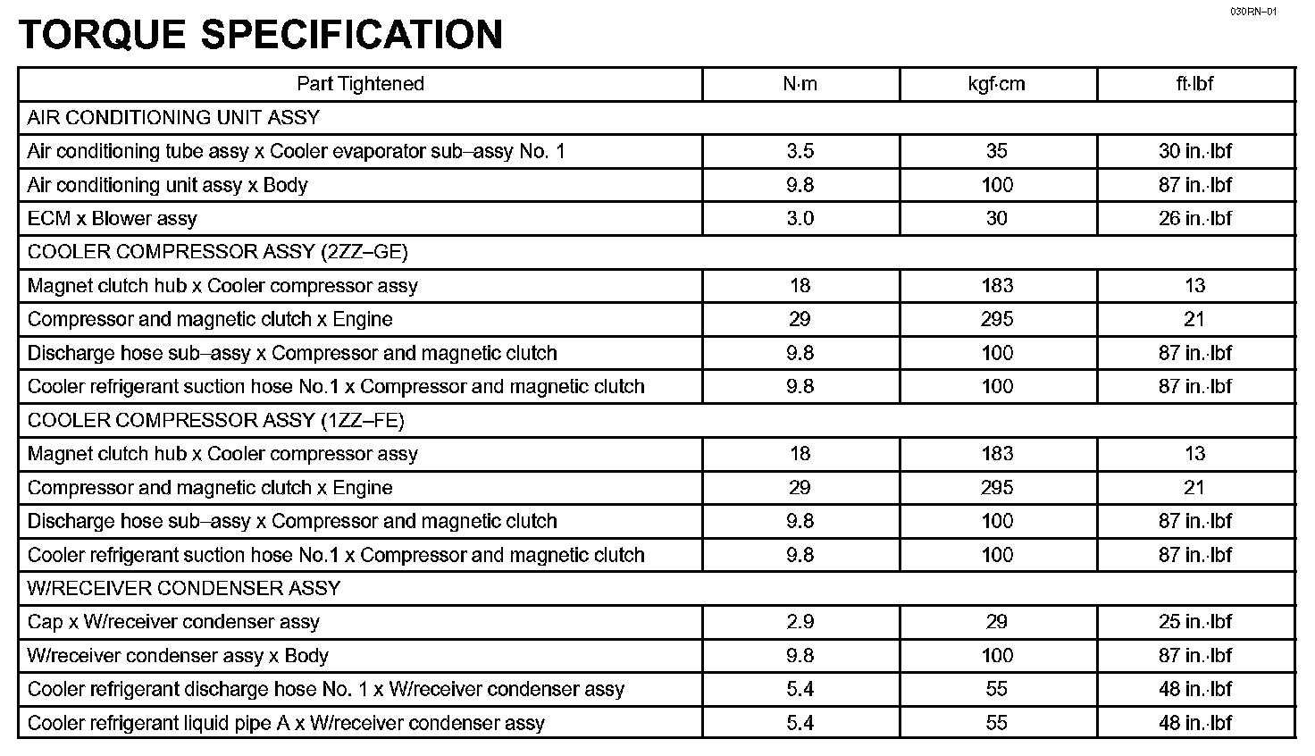 Heater & Air Conditioner - Torque Specification: