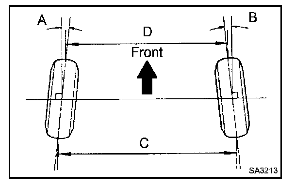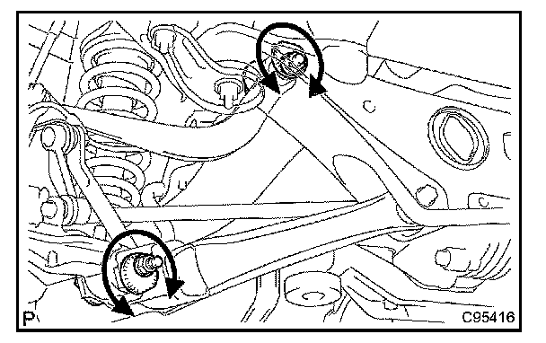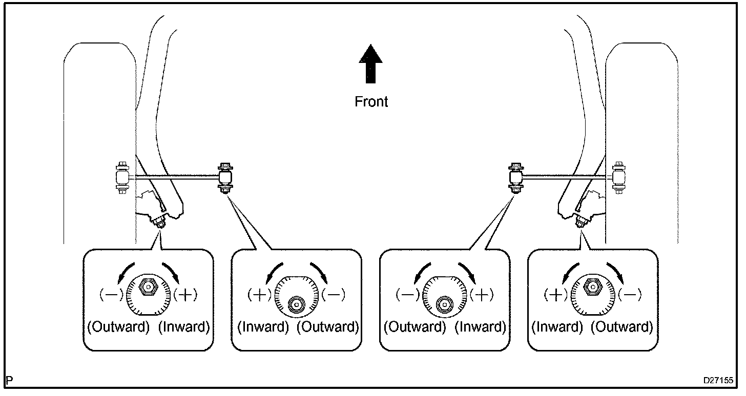 If the toe-in is not within the specified value, inspect and replace the suspension parts as necessary.