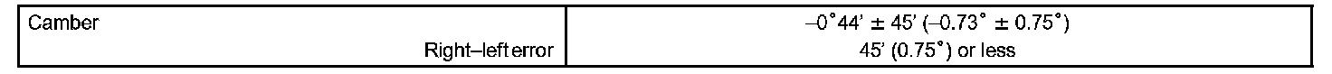 If the measured value is not within the specified value, inspect the suspension parts for damage and/or wear and replace them if necessary because camber is not adjustable.