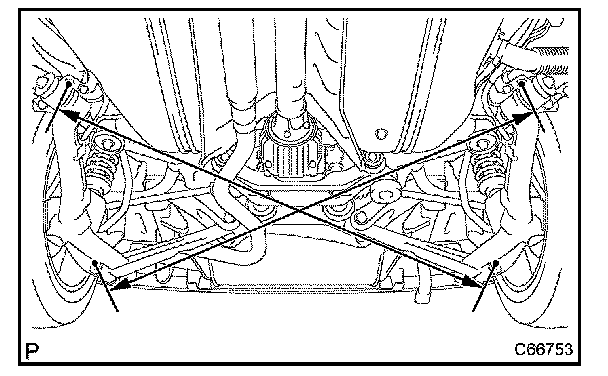 (a) Measure the distance from the LH lower suspension arm bracket set bolt to the RH axle carrier rear side set bolt as shown in the illustration.