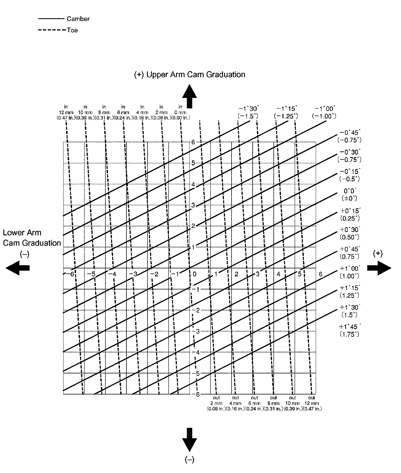 Lower arm cam (LH): + (Inward) 1.0