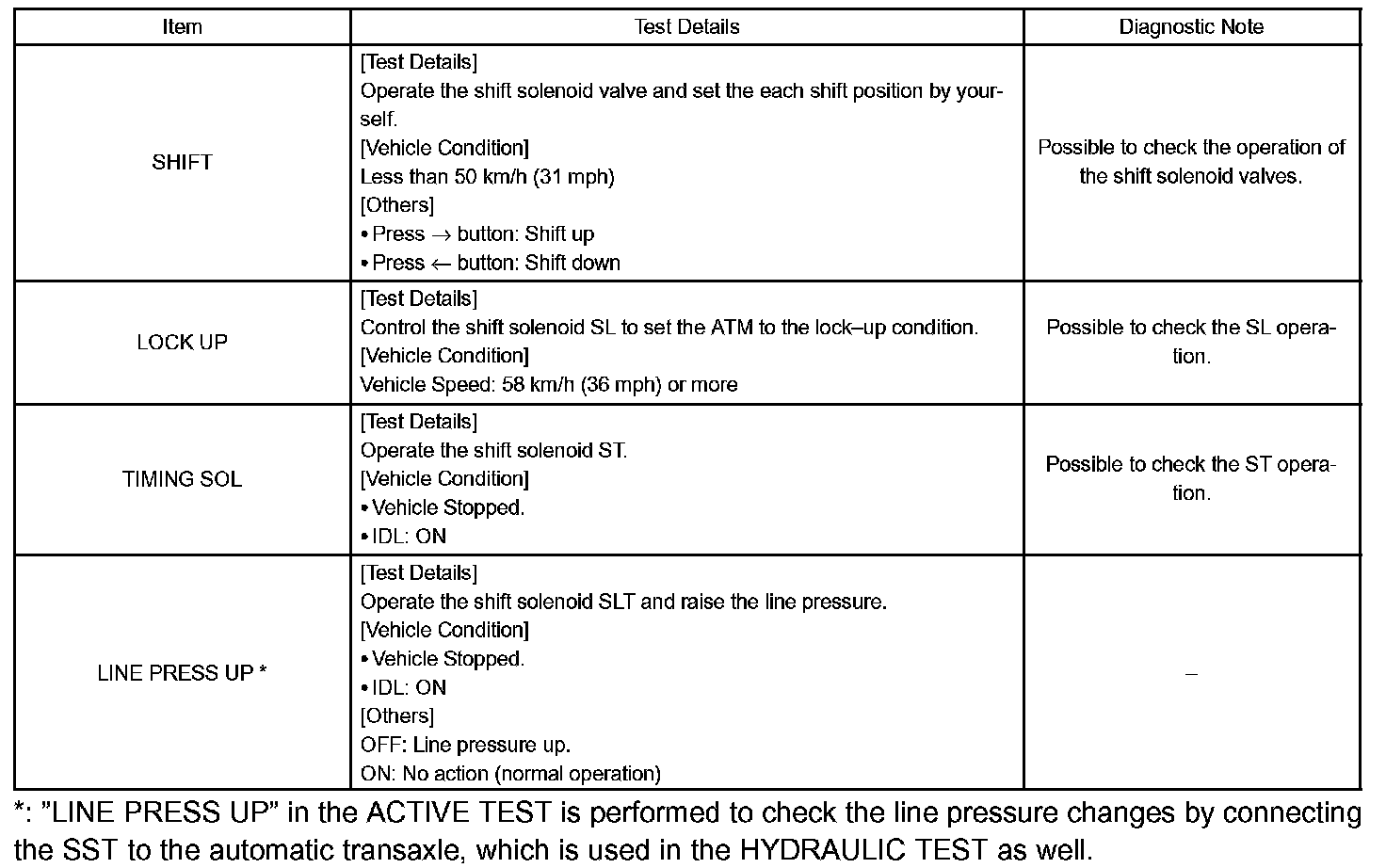 HINT: The pressure values in ACTIVE TEST and HYDRAULIC TEST are different from each other.