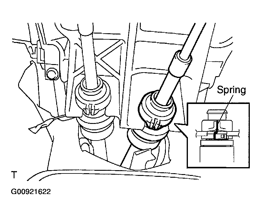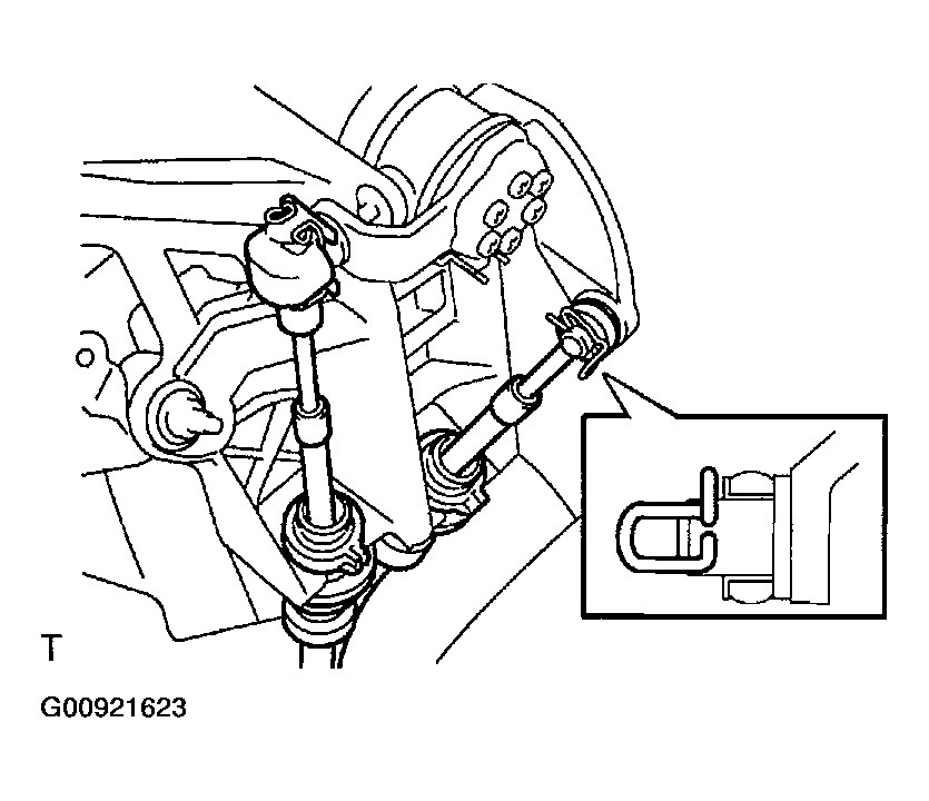 - Connect the shift cable end of the shift cable with the washer and clip to the transaxle.