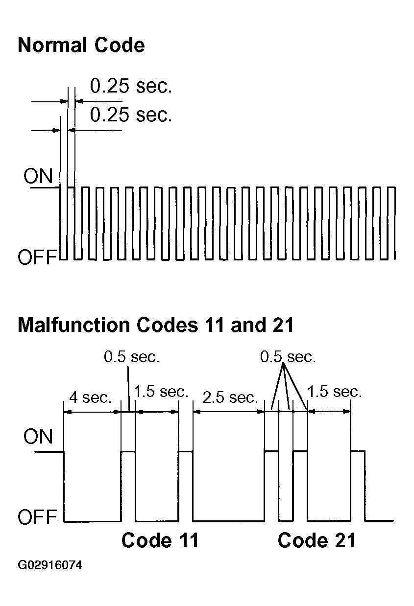As an example, the blinking patterns for codes are shown in Fig 3; for normal, 11 and 21.