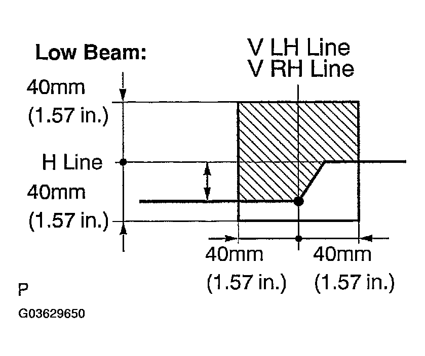 - V LH line, V RH line (center mark position of right and left headlamps)