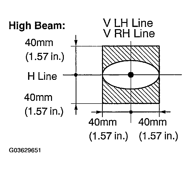 When performing "High-beam inspection", draw an H line, a V LH line, and a V RH line based on the center mark on the high-beam headlamp side.