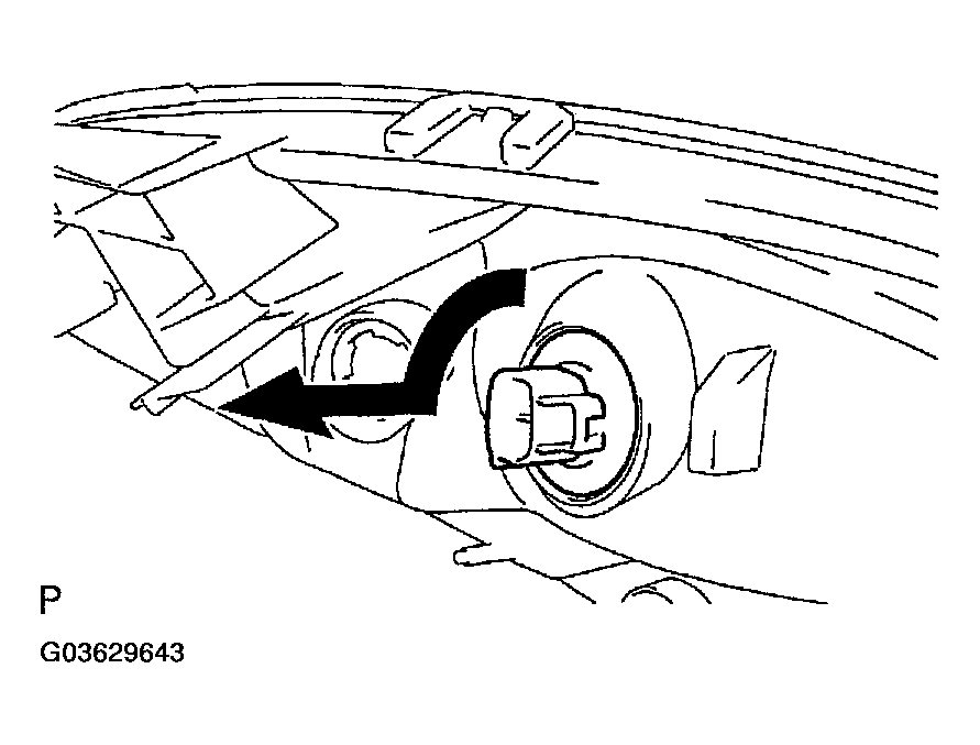 - Push the set spring in the direction indicated by the arrow in the illustration to remove the headlamp No.1 bulb.NOTE: Do not touch the bulb glass with your fingers.