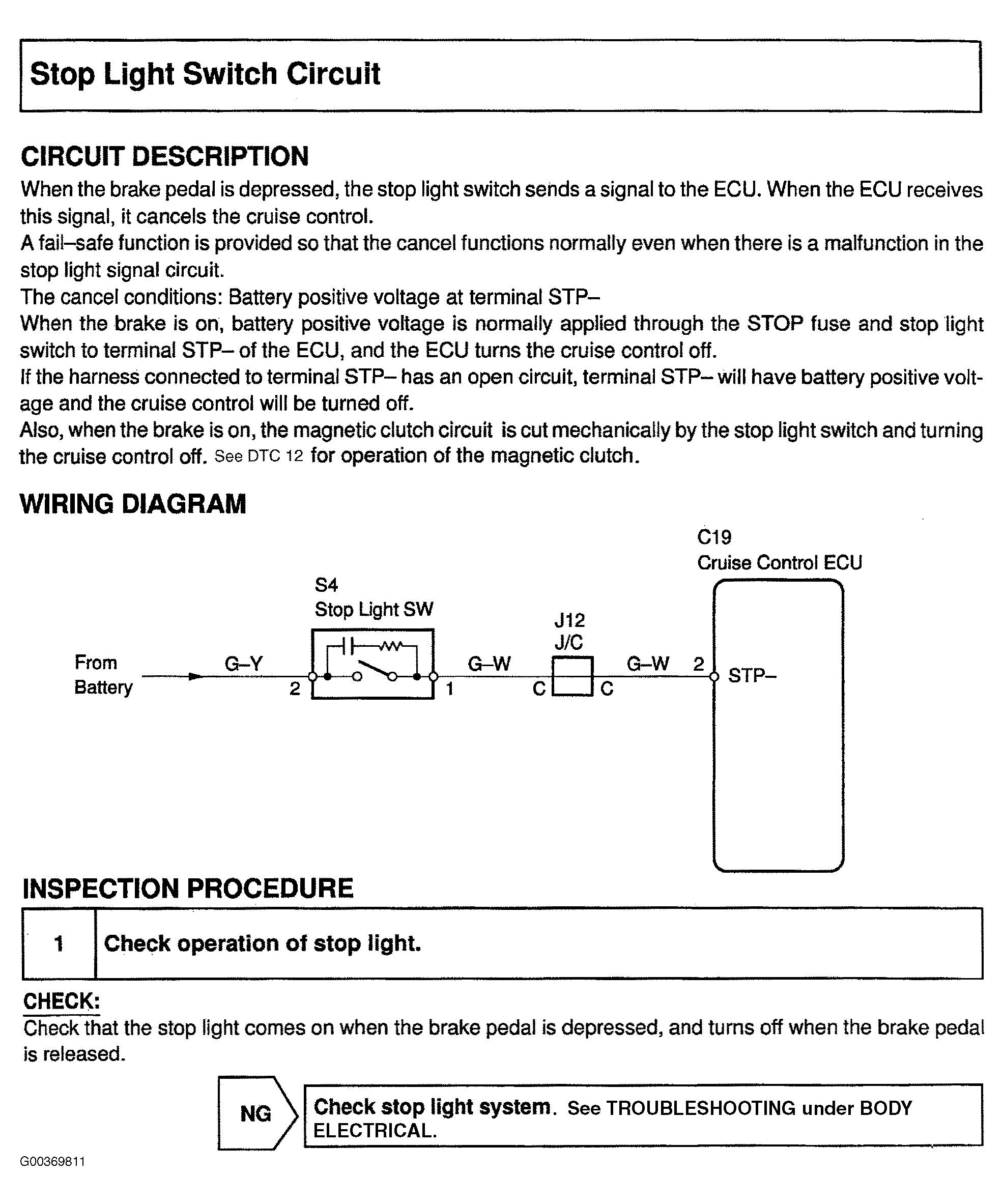 For stop light switch circuit testing procedure, see