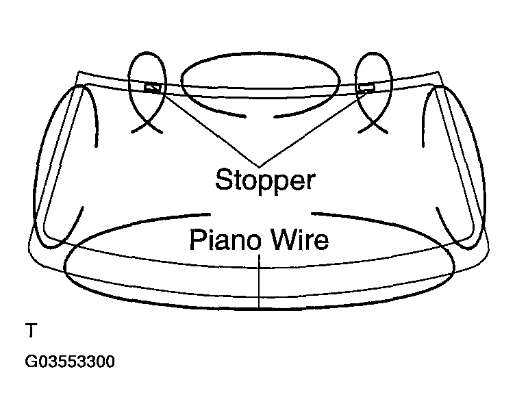 NOTE: When separating the glass from the vehicle, be careful not to damage the vehicle's paint or interior/exterior ornaments. - Cut through the adhesive by pulling the piano wire around the glass.