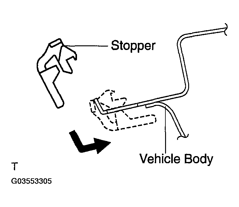 - Install 2 new stoppers to the vehicle body, as shown in Fig 7 .