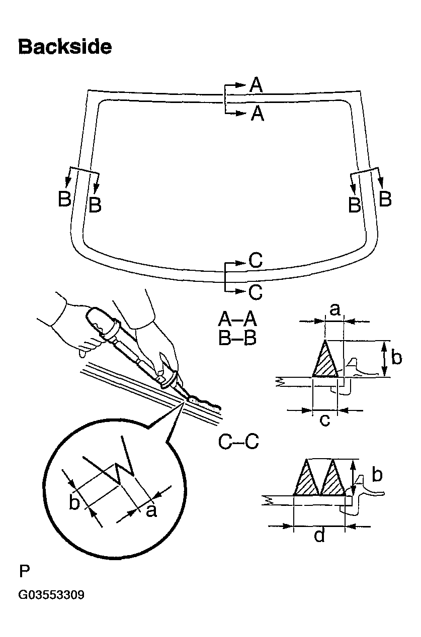- Using a knife, cut away any rough adhesive on the contact surface of the vehicle body to ensure the appropriate surface shape.NOTE: Be careful not to damage the vehicle body.