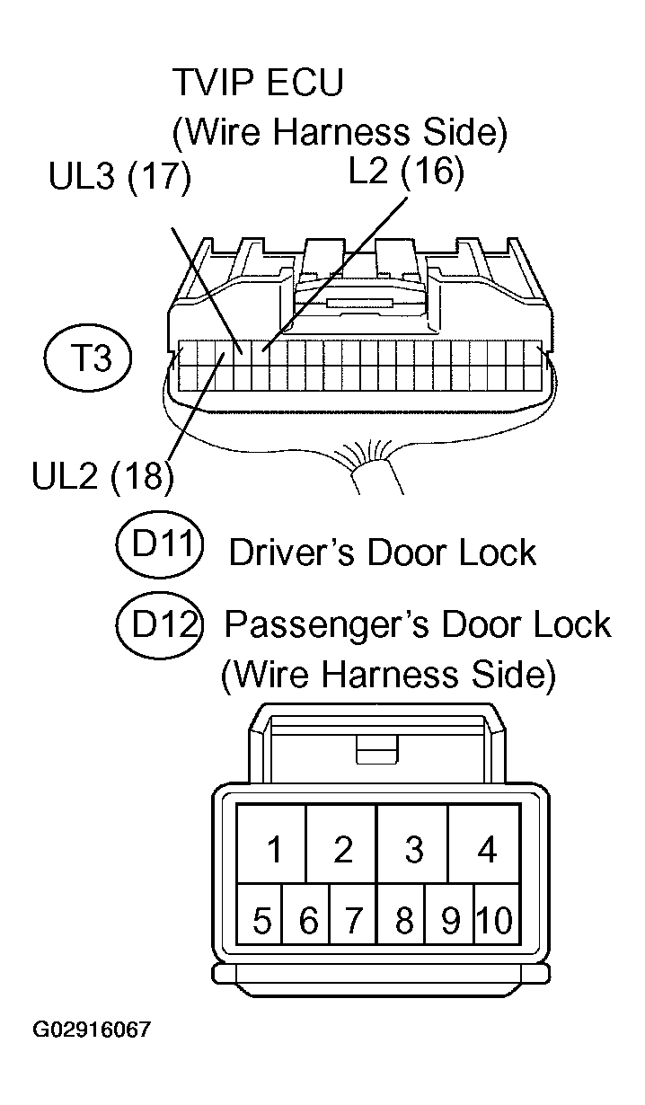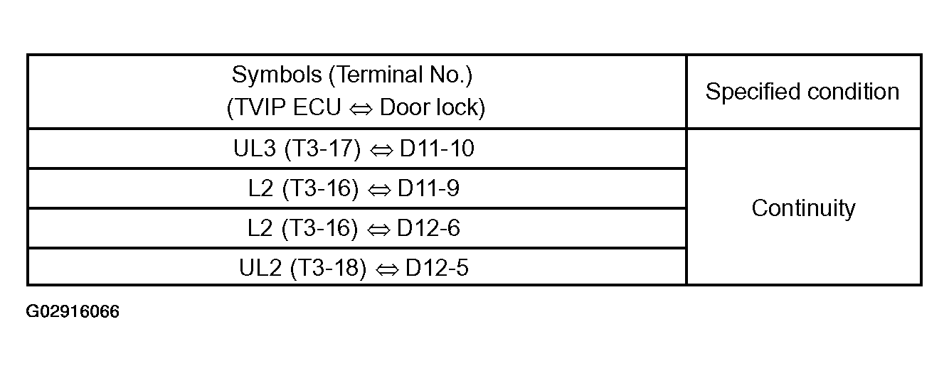 - CHECK WIRE HARNESS (TVIP ECU <--> DOOR LOCK)
