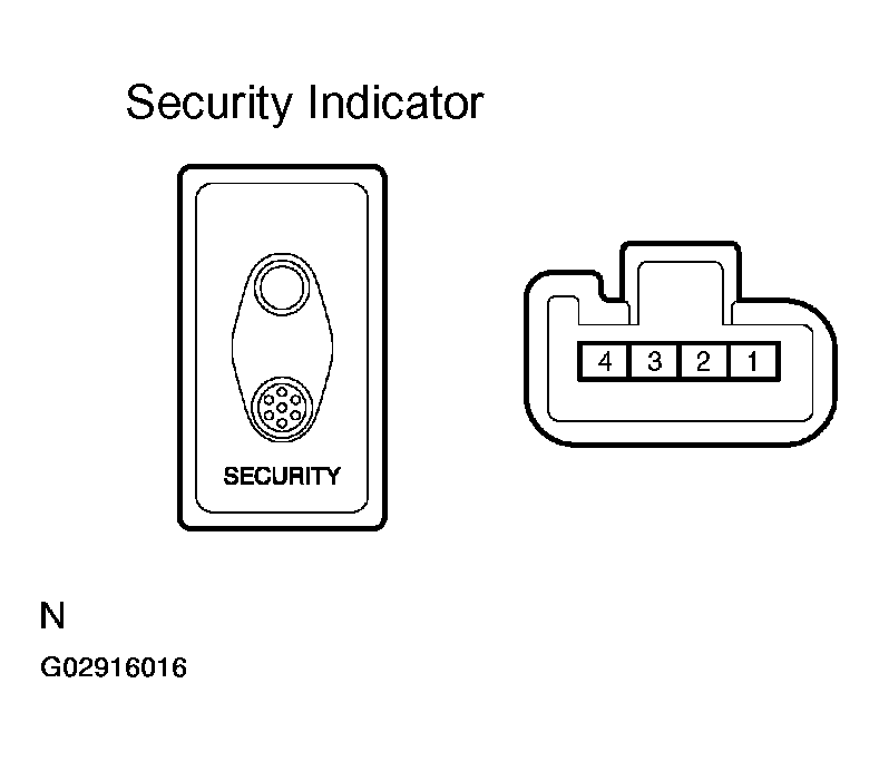 - Check the continuity between the terminal of the security indicator connector and the body ground, as shown in
