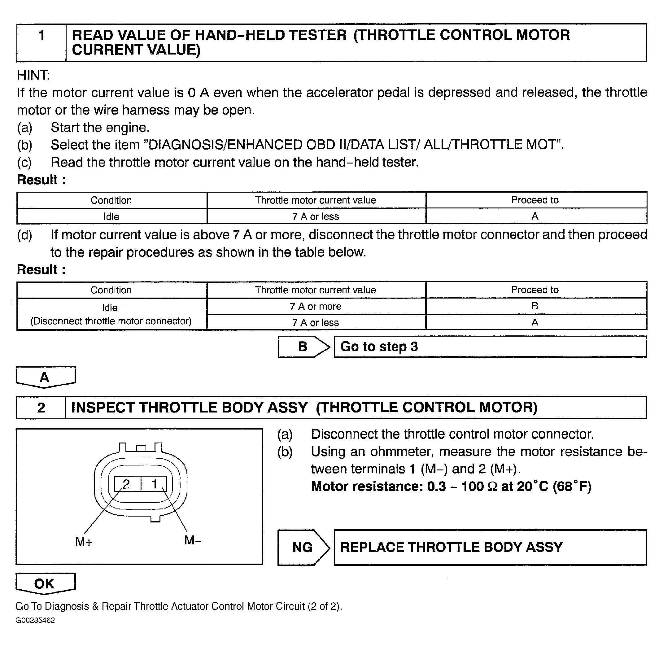 Fig 2: Diagnosis & Repair Of Throttle Actuator Control Motor Circuit (1 Of 2)