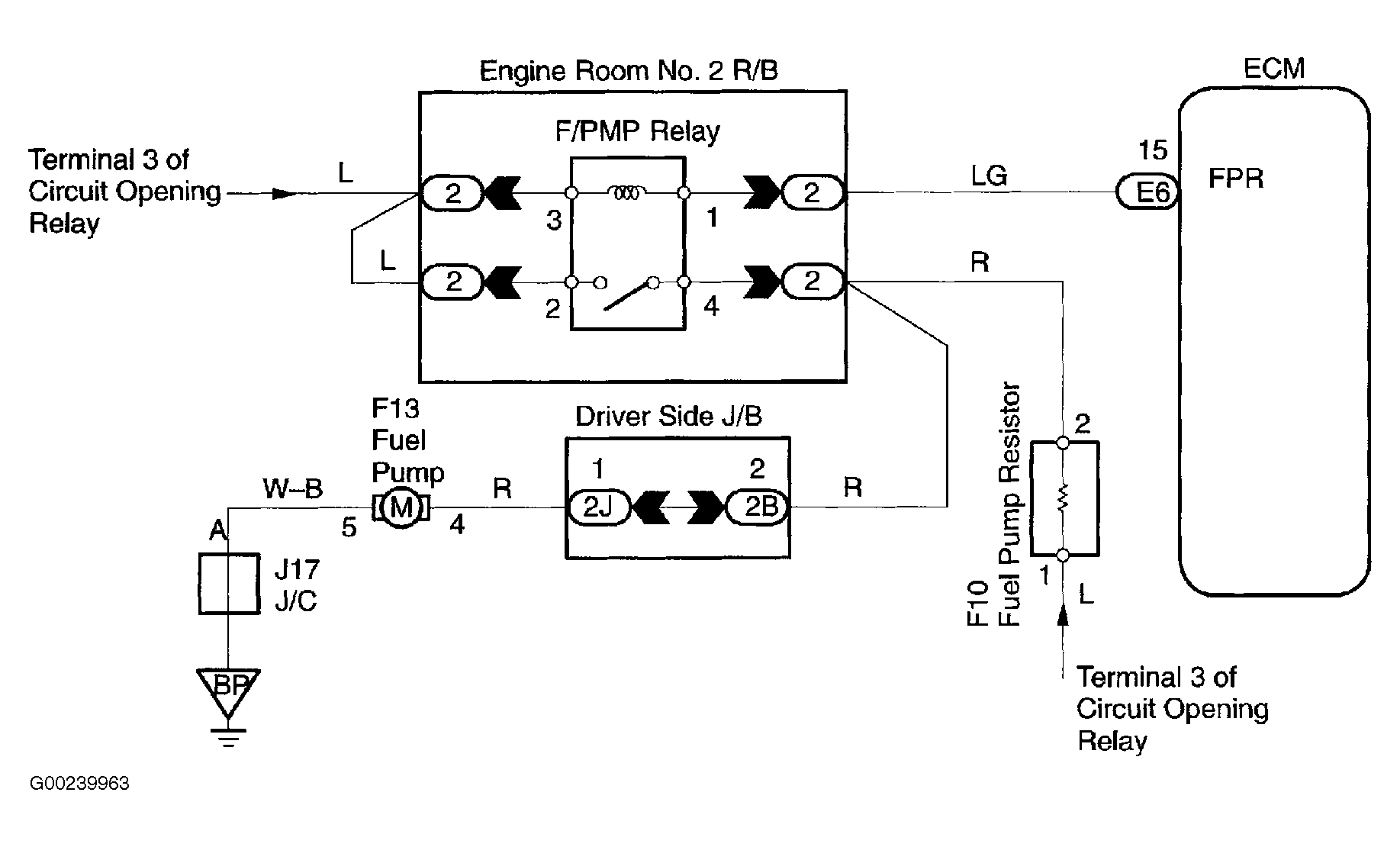 - Open or short in fuel pump relay circuit.