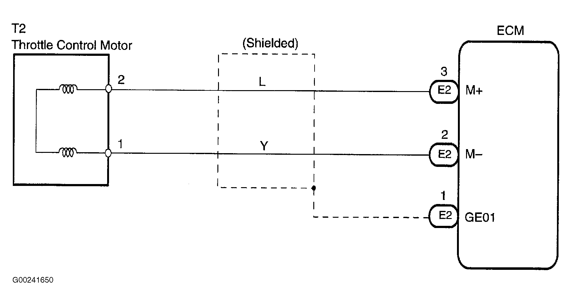 Throttle motor is operated by the ECM and it opens and closes the throttle valve. The opening angle of the throttle valve is detected by the throttle position sensor which is mounted on the throttle body. It provides feedback to the ECM to control the throttle motor in order to control the throttle valve opening angle properly in response to the driving condition. If this DTC is stored, ECM shuts down the power for the throttle motor, and the throttle valve is fully closed by the return spring. Throttle valve is locked at a certain opening angle. Also, the whole electronically controlled throttle operation is cancelled until the system returns to normal and the ignition switch is turned OFF. See Fig 1. Possible causes are: